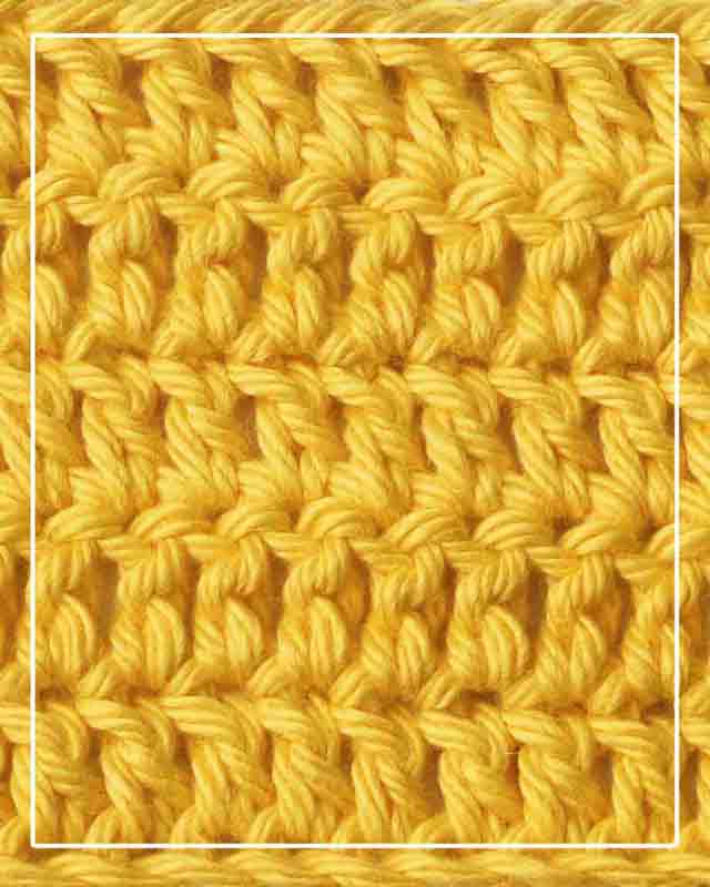 The double crochet (abbreviated dc) is one of the most common crochet stitches and is about twice as tall as a single crochet. As a result, a double-crochet fabric is fairly solid but not stiff and is great for just about any project.