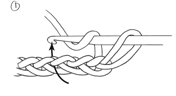 Skip the first half double crochet below the turning chain. Yarn over, insert hook from front to back under the top 2 loops of the next half double crochet in the row below, yarn over, draw yarn through stitch, yarn over, draw yarn through 3 loops on hook (first half double crochet complete). Repeat this step in each half double crochet across and in the top of the turning chain at the end of the row.